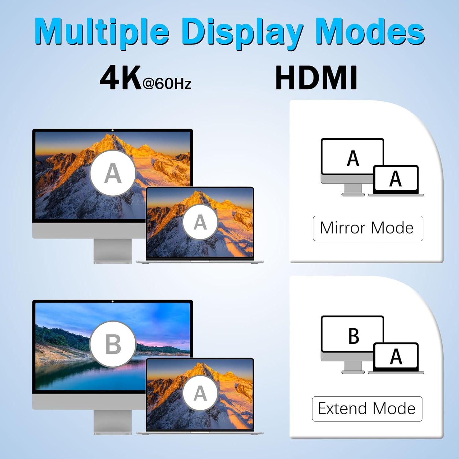 O se tasi o faʻamanuiaga muamua o le 4-in-1 USB-C Hub ma le 4K 60Hz HDMI Splitter o lona gafatia e tuʻuina atu ata vitio maualuga. O le HDMI uafu e lagolagoina le 4K iugafono i le 60Hz, e maua ai ata manino ma le sologa lelei.