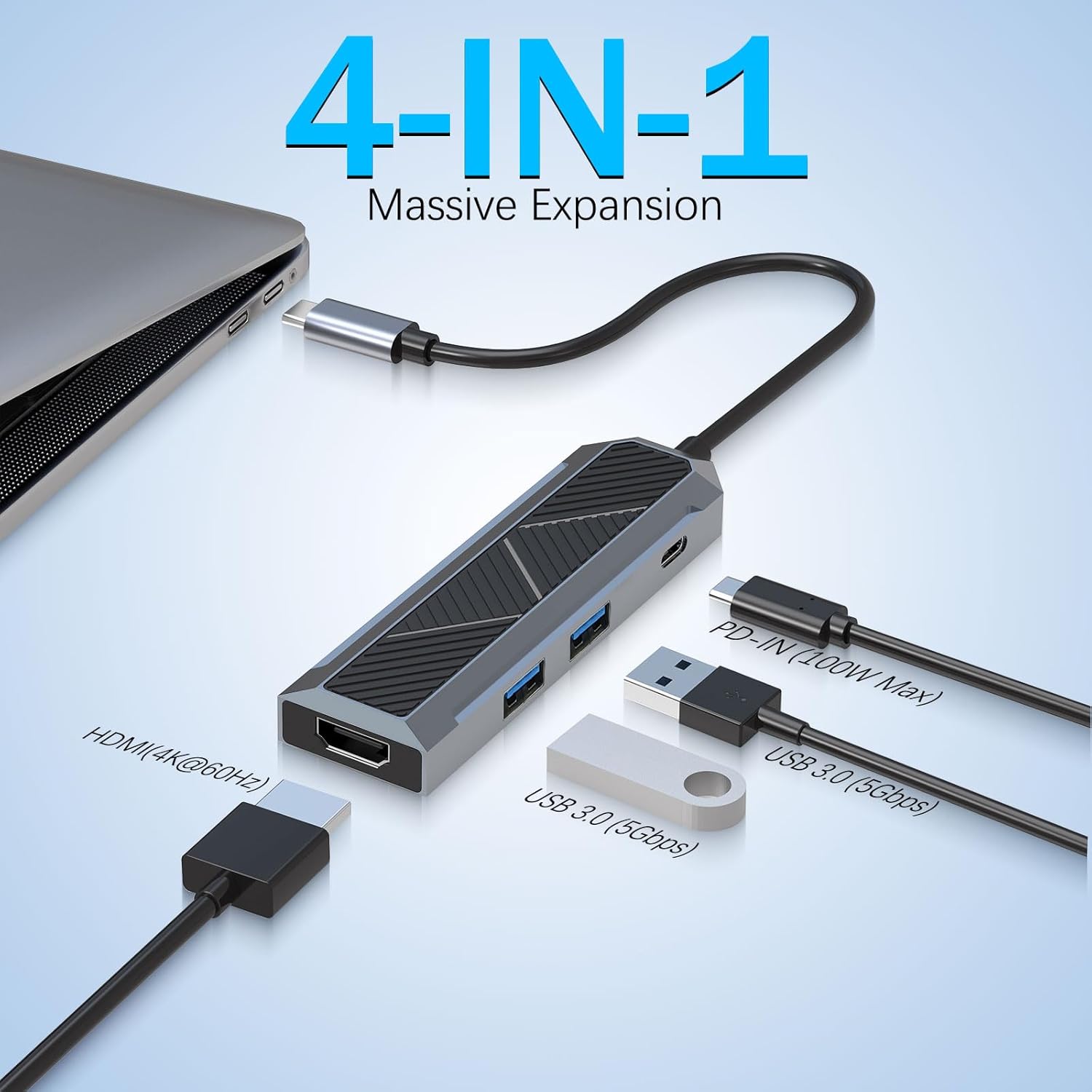 4-in-1 USB-C Hub ma 4K 60Hz HDMI Splitter – Feso'ota'i Fa'atasi mo masini fa'aonaponei