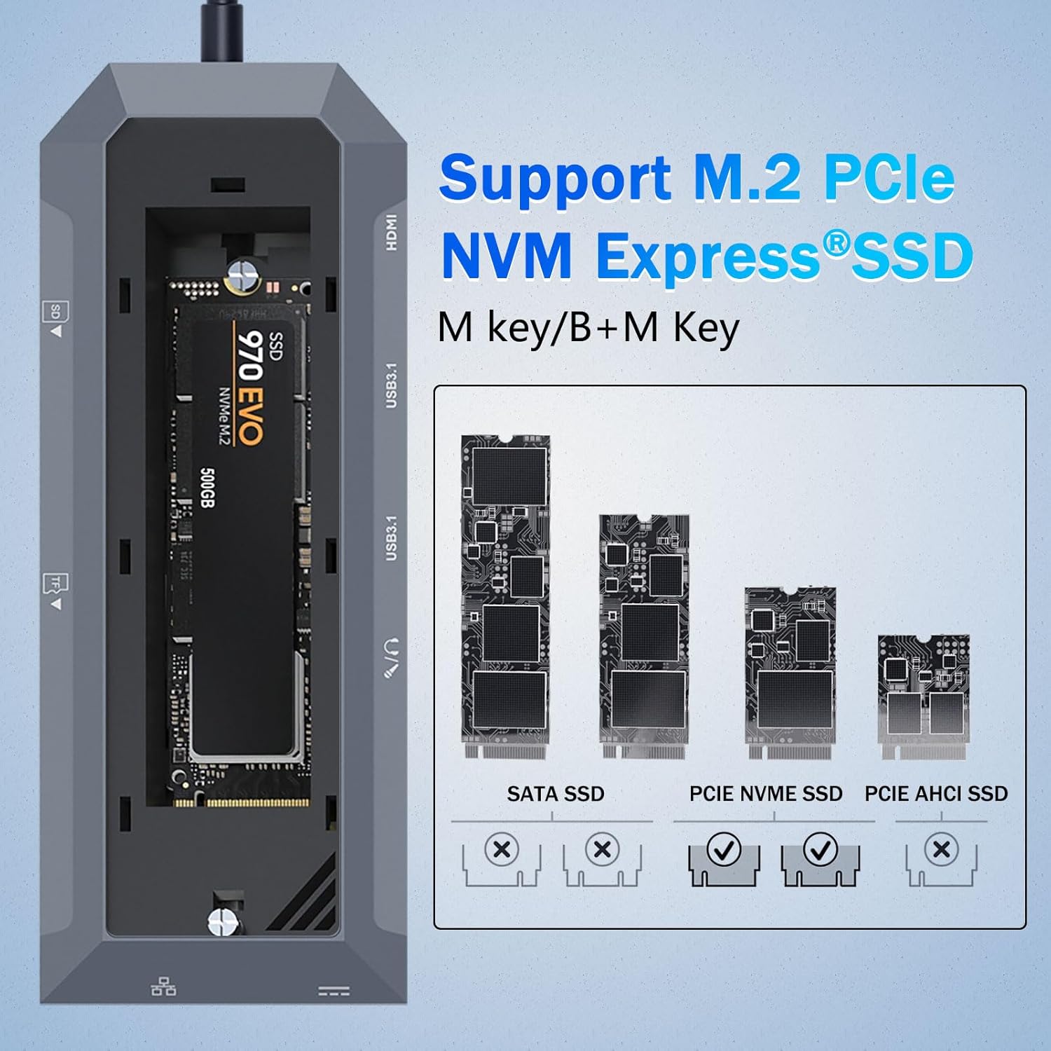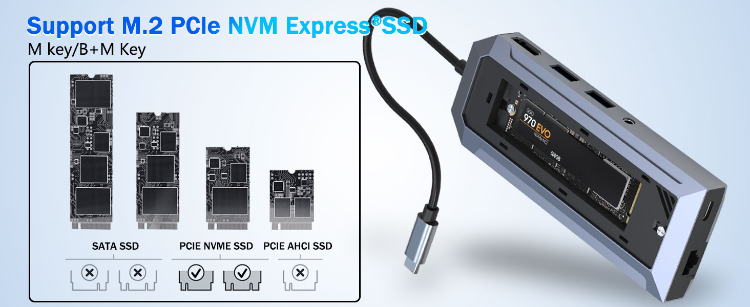 E le pei o hubs USB masani, o lenei masini e aofia ai se pa puipui SSD tuuto e lagolagoina M.2 NVMe ta'avale malo. O lenei vaega e mafai ai e tagata fa'aoga ona fa'aopoopo sa'o le teuina o le saosaoa i la latou avanoa faigaluega e aunoa ma le mana'omia o se ta'avale ese'ese mai fafo.