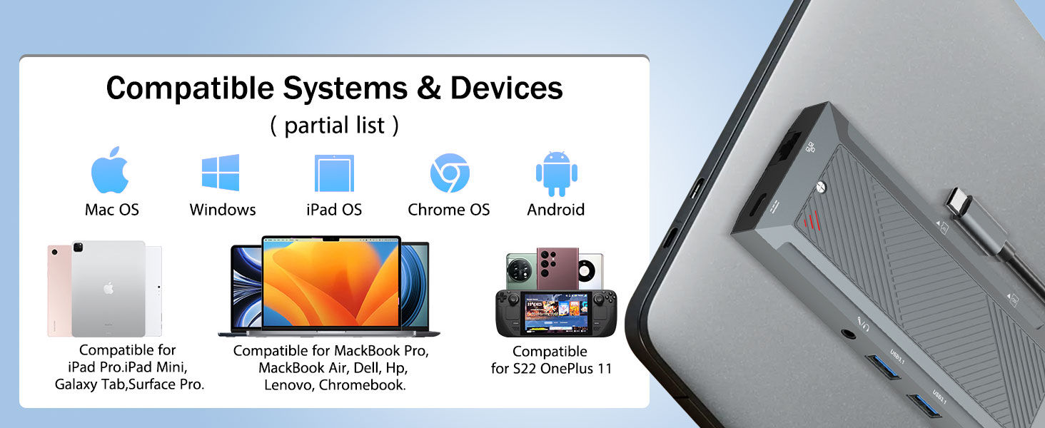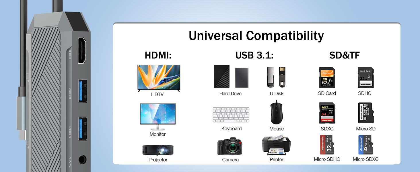 Komipiuta komepiuta fa'aonaponei ma papalama ua fa'atuputeleina le mamana ma fe'avea'i, ae o le tele o masini e fa'atauina taulaga taua e fa'atatau i mamanu fa'aitiiti. O se taunuuga, e masani ona manaʻomia e le au faʻapolofesa, foafoa, ma tagata faʻaoga i aso uma se fofo fesoʻotaʻiga tele e faʻalauteleina ai le gafatia o masini e aunoa ma le faʻafefeina o le faʻatinoga. O le 9-in-1 USB-C Hub ma SSD Enclosure mo M.2 NVMe 4K 60Hz HDMI Splitter e maua ai se fofo uma-i-tasi e tuʻufaʻatasia ai le televave o faʻamatalaga faʻamatalaga, faʻaaliga faʻaalia ultra-manino, ma faʻaogaina SSD faʻapipiʻi galuega.