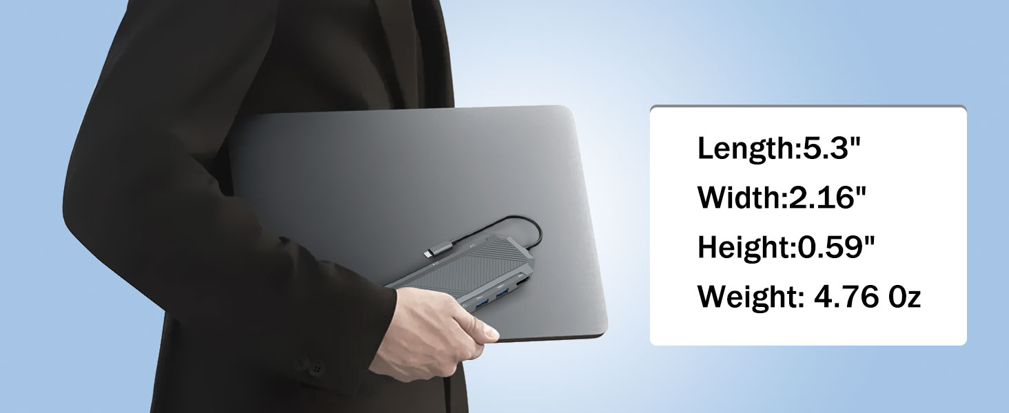 E ui lava i lona faʻatinoga mamana, o le 9-in-1 USB-C Hub ma SSD Enclosure mo M.2 NVMe 4K 60Hz HDMI Splitter ua mamanuina e tumau faʻatasi ma mama. O le mea lea e faigofie ai ona ave i ato komepiuta, ato fa'afafa, po'o pusa malaga.
