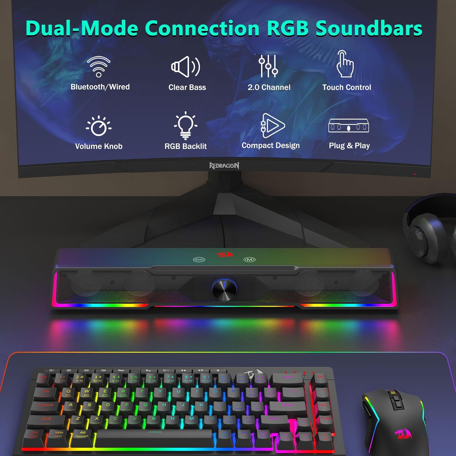 E le pei o failauga masani o loʻo nofoia vaega tetele i itu uma e lua o le mataʻituina, o le Black GS516 Bluetooth/USB Wired Connection Soundbar Volume Knob Computer Speaker o loʻo faʻaalia ai se fausaga paʻu leo e fetaui lelei i lalo ole tele o lau komepiuta.
