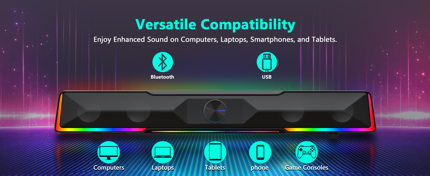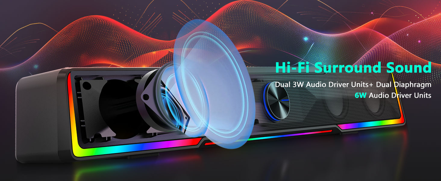 Faatasi ai ma le paleni leo leo, faʻatuatuaina le faʻatinoga, ma le lautele o masini fesoʻotaʻiga, o le Black GS516 Bluetooth/USB Wired Connection Soundbar Volume Knob Computer Speaker e faʻaleleia ai galuega, taʻaloga, ma faʻafiafiaga aafiaga i totonu o le fale ma le ofisa.
