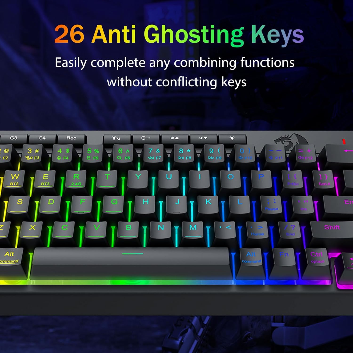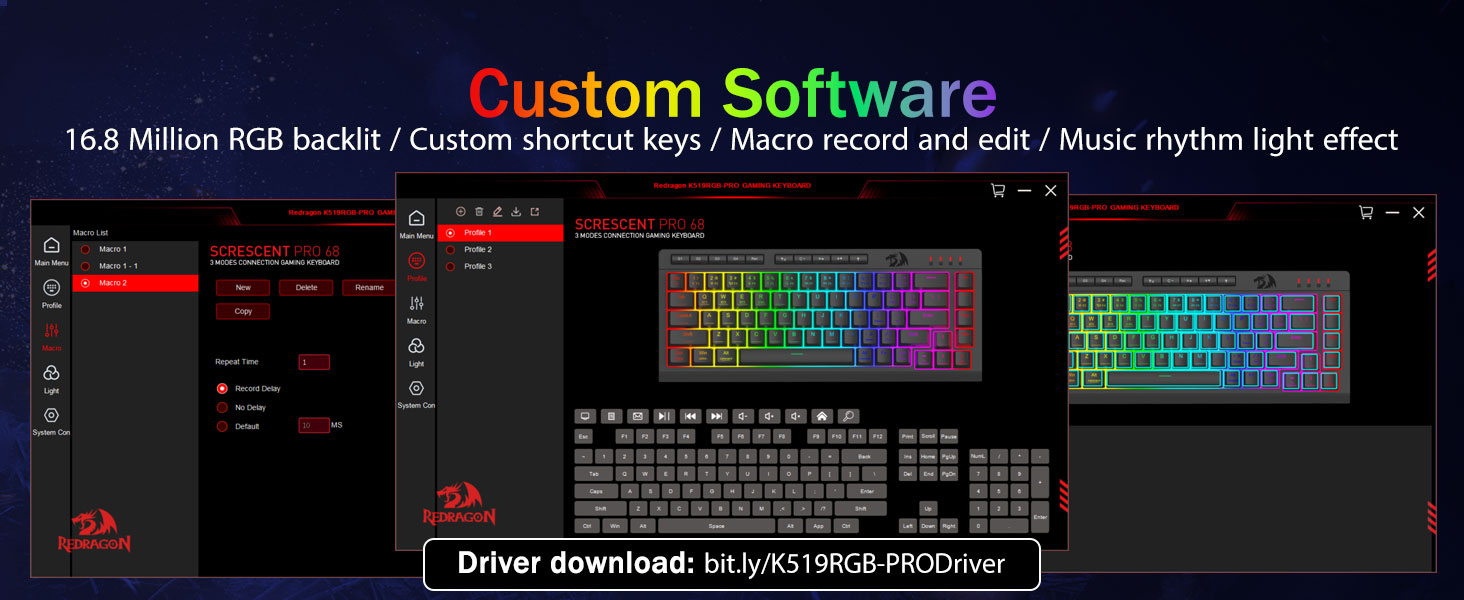 Masani Macroable Macros, le mafai ona tausia -Polokalame le 4 i luga o le 4 i luga o le Macro ki (g1-g4) vave-leai se polokalama manaomia. Faamaumau Prox combos mo taʻaloga, auala 'alo mo fua, poʻo ni ala o faasalalauga poloaʻiga. Toe faamatala lau galuega i sekone. E mafai foʻi ona faʻaaogaina le polokalama e fai ai ni gaioiga, fausia Macros, fetuunai RGB moli, ma seti auala 'alo. Polokalama fesoʻotaʻiga: bit.ly.ly/k524RGB-PRUVERIVE