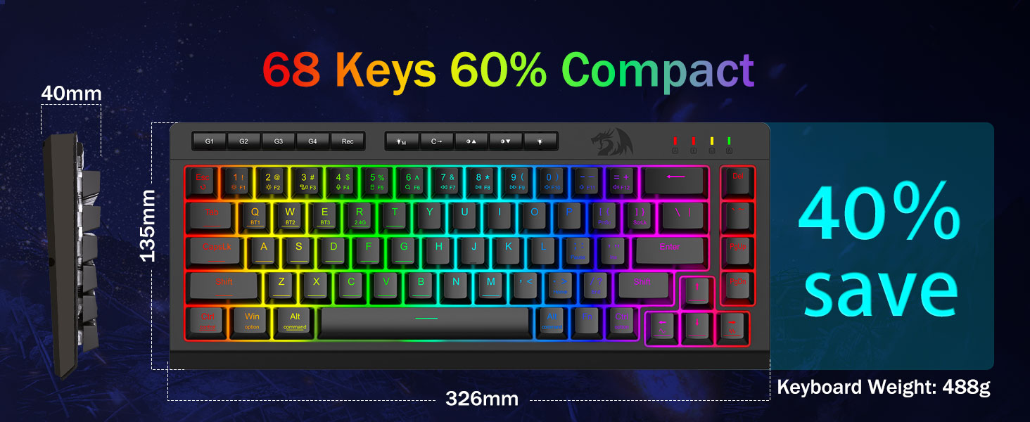 Faatomuina RGB moli & le masani ai le fiafia -Tanklesh 16.8 miliona RGB lanu ma le 8 pretting mode (nuanua le galu, toe fai le tataina) + 6 dist depiles. Fetuunai le pupula mai le ola fatu i le stealth mode-lelei mo le tuai-po taʻaloga taʻalo poʻo le ofisa faʻaaogaina.