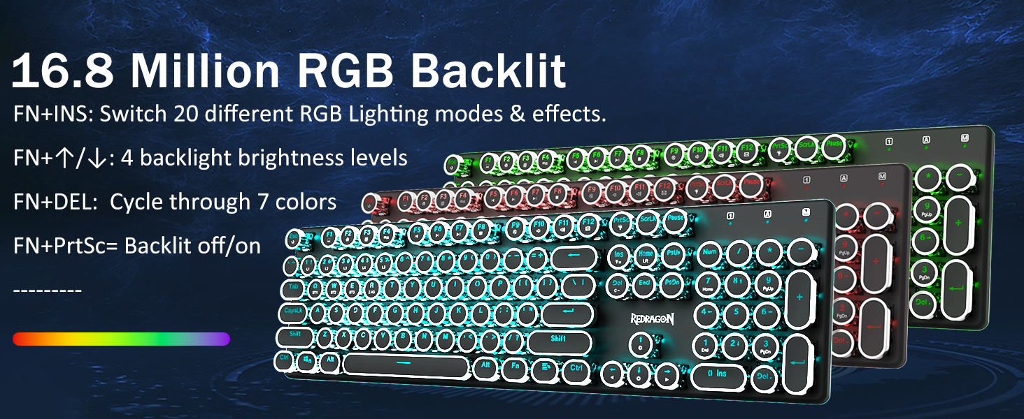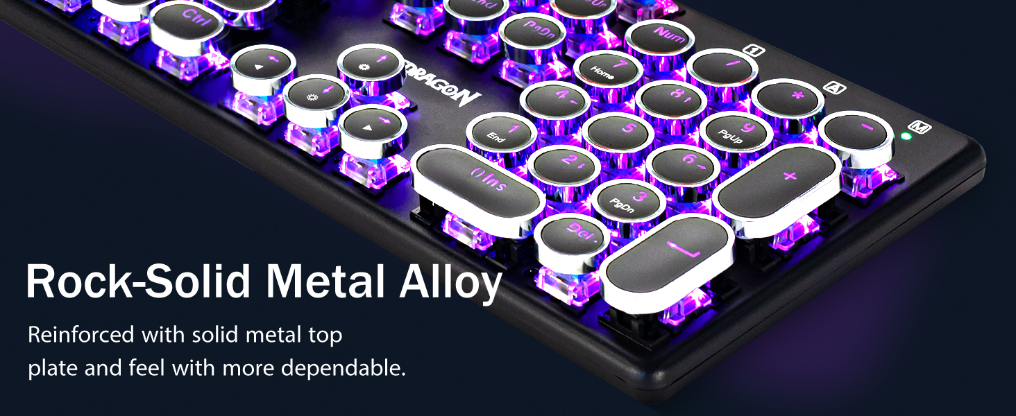 𝗥𝗲𝘁𝗿𝗼 𝗧𝘆𝗽𝗲𝘄𝗿𝗶𝘁𝗲𝗿 𝗧𝘆𝗽𝗲𝘄𝗿𝗶𝘁𝗲𝗿 𝘄𝗶𝘁𝗵 𝗠𝗲𝗰𝗵𝗮𝗻𝗶𝗰𝗮𝗹 𝗞𝗲𝘆𝘀 -Redragon mechanical Blue Switchs ofoina Feololo Freeces Rephies, Chaded Clicked Camcky Came & Trakie Missive ma Precind Cordist Siosiomaga ma Faatinoga. O le vintage Steampunk keyboard taamilosaga o keycaps e pei o se ata faʻataʻitaʻi, aumai ia te oe le lelei typing lagona lagona & tumau kiliki.