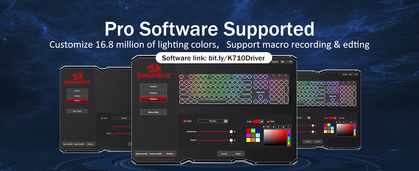 Chuangquan, o le GRADS Saina gaosi oloa, tuʻuina atu i le Redragon Black K710 Wirebrity Systewrical System o le Clorboang Prey ma le tipiina-pito o le ata o le keyboang. O lo o stoleti bectile blue switches, vibrat rgb moli, ma triple-faiga fesoʻotaʻiga, o lenei keyboard e sili atu le mautonu ma le taina. Lelei tele mo tupe maua a le Chuatquejequan o le tau faʻatau atu le tau ma faʻatuatuaina oemu / odm lagolago mo le Global Capliers o loʻo sailia le lelei o le lalolagi.