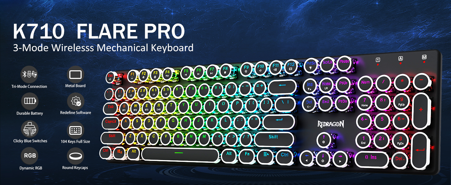 Chuangqueas faʻapitoa faʻapitoa i le gaosia o le Redragon Black K710 Wirebrity Systewrite System Sysponical Gamboard Cyut. Lenei keyboard o loʻo tuʻufaʻatasia se tagata redro-musuia mamanu ma se pulupulu uʻamea potu ma 104-ki anti-sukalati, mautinoa le saʻo i le faʻafitauli o gamela. O ona masini lanumoana lanumoana e maua ai le tali tala a le tala fatu Faatasi ai ma le Bluetooth Bluetooth, 2.4Ghz uaealesi, ma uaea fesoʻotaʻiga, o le K710 fetuunaiga i le tele o masini. Lagolagoina e ala i polokalame faʻapitoa mo Macros ma Faʻamamaina aafiaga, e fai togafiti i le gamers ma polofesa. I le avea ai o se tagata gaosi fale gaosi, chuangquan poloaiga sili ona lelei pulea, taugata tau faʻatonutonu, ma fetuʻutuʻunaʻiga masani mo soʻona paaga lalolagi i le lalolagi atoa.