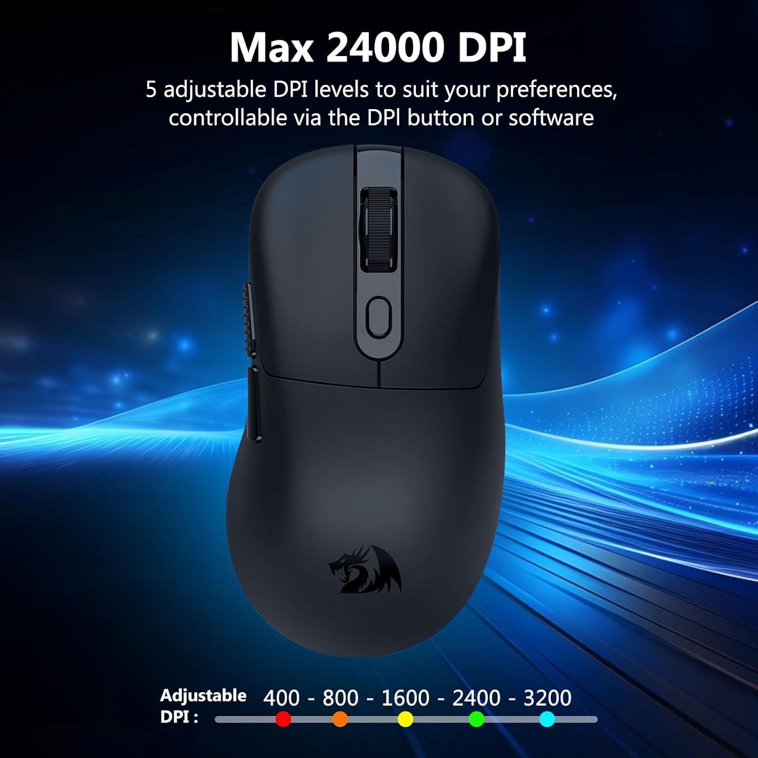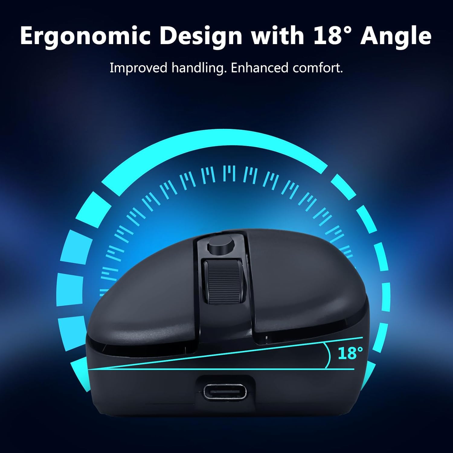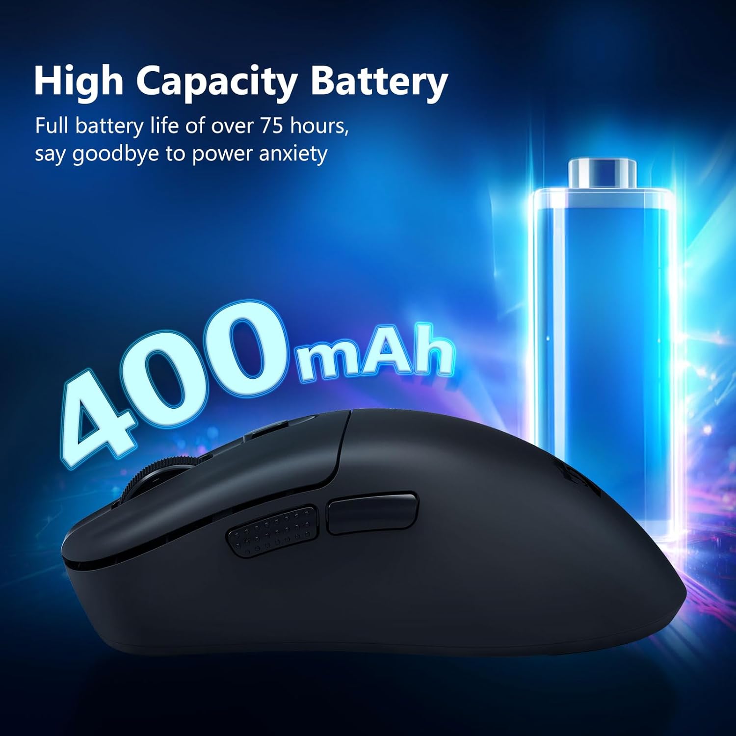 CHUANGQUAN Black M818 Wireless 24,000 DPI, Tri-Mode 2.4G Gaming Mouse e tuʻuina atu le suʻesuʻeina saʻo, fesoʻotaʻiga fetuutuunai, ma le pulea lelei, lelei mo tagata taʻaloga ma tagata tomai faʻapolofesa o loʻo sailia le saoasaoa, saʻo, ma le faʻaogaina tele-masini faʻatinoga.