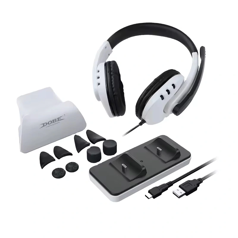Fa'ata'ita'i fa'atausi'a'a'a DOBE PS5 ta'aloga ta'aloga 12 i le 1 seti, nofoa nofoa + lipine uaea + tu + fa'aoso fa'aoso + seti pulou fiafia.