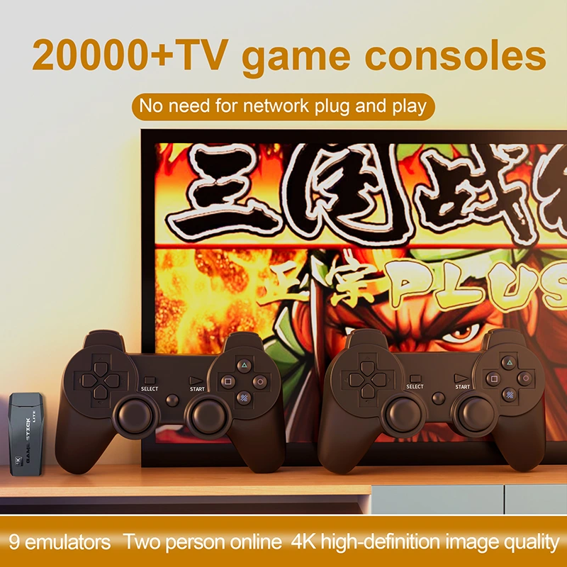 HUO JI M8 2.4G Wireless Nostalgia Retro Game Console .Plug and Play Video Game.Built in 20000+ Games.- Stick Game - Retro Play Game Stick With 4K HDMI Output.Tau taugofie, mautinoa lelei, faafeiloai e fesili