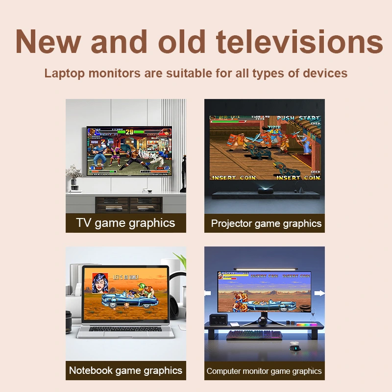 ❤ 【Fa'afaigofie ona Fa'aoga】Na'o le fa'afeso'ota'i le ta'aloga i le puna eletise, ona fa'apipi'i lea i le TV, ma fetu'una'i le puna TV i le HD channel e fa'aali ai le lau lisi o ta'aloga ile TV. O laʻasaga faʻapitoa e faʻapea: 1. Faʻafesoʻotaʻi muamua le HD output o le TV 2. Faʻaofi i totonu o le TF game content card 3. Faʻaaogaina le faʻapipiʻi faʻapipiʻi e faʻafesoʻotaʻi i le eletise o le a otometi lava ona ki. (2 wireless controllers e manaʻomia ona faʻapipiʻi 4 AAA maa, e le o aofia i totonu o le afifi)