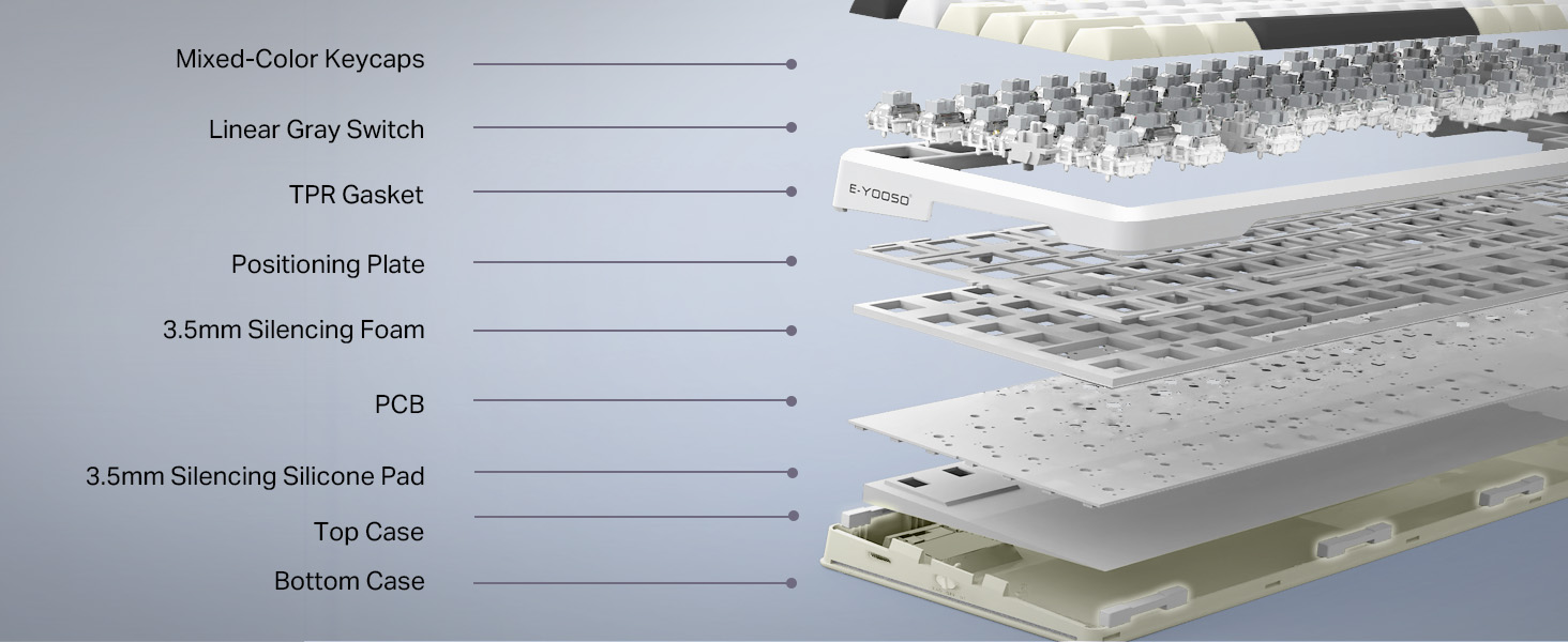 O le leo o le pisapisao o le kesi o kesi-velaina e faʻaaoga ai le tele o faʻataʻitaʻiga o mea e sili ona lelei o mea e sili atu le lelei o le talaʻiga o le talaʻiga. O vaega autu e aofia ai: Plate Foam (poron Bam i le va o le Plate ma PCB e aveese ai le libration leo), ma le propera-denraty sili ona teuteuina ai le pcb Premium togafiti tuʻufaʻatasia past packs pakete (faamau o le Fono Aoao Tusitusiga) ma Ptfe Acoustic ata tifaga (toe maua mai ai le tele-taimi-masani-masani ai