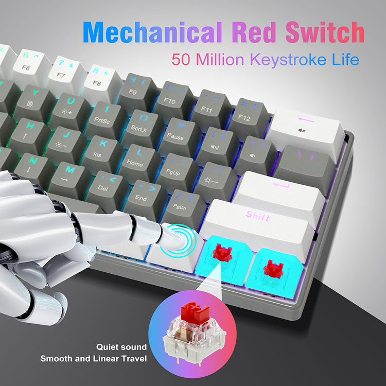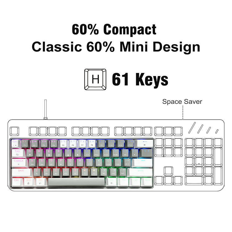 · 60 pasene piano feaveai mamanuO lenei Portable 60% RGB Mechanical Gaming Keyboard o loʻo i ai se lapoʻa atoatoa ma e lelei mo siʻosiʻomaga uma, pisinisi malaga taʻaloga ofisa faʻaoga ile fale, e aunoa ma le Numpad, sili atu ona aoga mo Gamers ma Typist, tuʻuina atu avanoa i lau laulau.