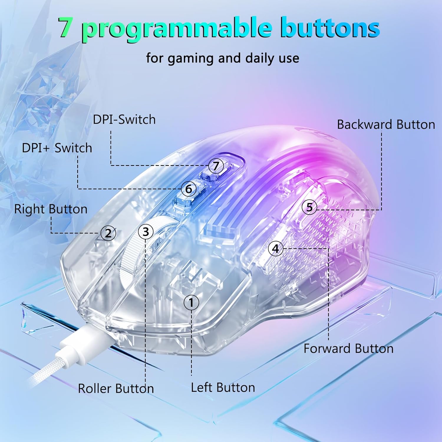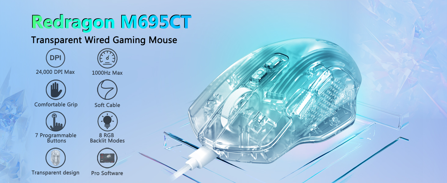O le White M695CT 24,000 DPI 8 RGB LED Backlit Mode Wired Gaming Mouse e maua ai se tuufaatasiga paleni o le saʻo, mautu, ma le faʻaaogaina. O lona fa'aogaina maualuga, fetuutuuna'i lagona, ma le ergonomic mamanu e talafeagai mo ta'aloga ma galuega i aso uma.